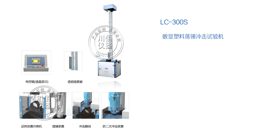 LC-300系列落錘沖擊試驗機試驗機采用雙管式結構,主要由工作臺、防止二次沖擊機構、錘體、升降機構、自動落錘機構、電機、減速器、電控箱、機座等部分組成。廣泛適用于各種塑料管材的耐沖擊性能的測定,還可應用于板材、異型材的沖擊測定。該系列試驗機廣泛應用于科研機構、大專院校、質檢部門、生產企業做落錘沖擊試驗用。